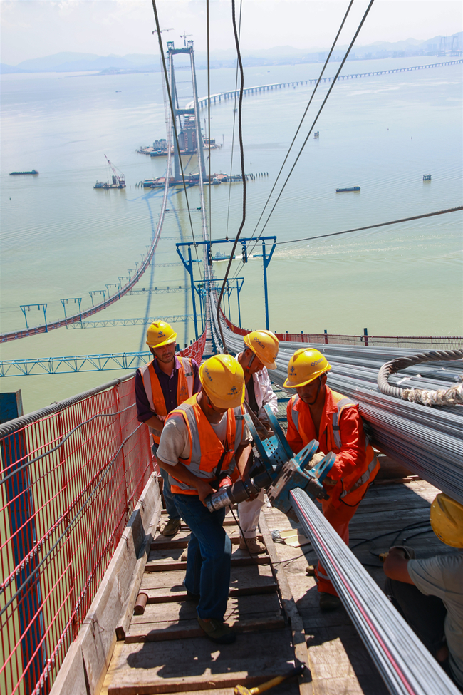 目前,伶仃洋大桥索股架设施工正有序进行,预计今年9月将完成全部主缆索股架设。届时,大桥将转入后期紧缆、索夹及吊索安装等施工阶段。(张政 李冕)