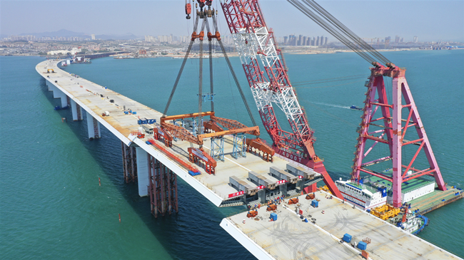翔安大桥跨海桥梁共有钢箱梁36节段、墩台83件,其中,A2标承担24节段钢箱梁和56件墩台的吊装施工任务,均采用“拼积木”式预制安装工艺,是继港珠澳大桥之后,国内第二次、福建省首次在跨海桥梁中应用。