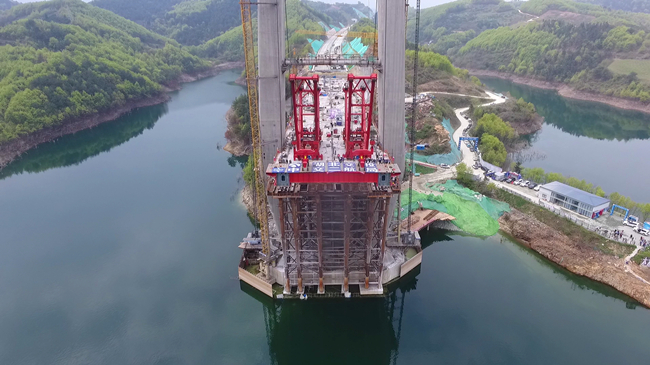 十淅高速3标起于丹江口市凉水河镇,向南跨越南水北调中线工程水源地丹江口水库,止于丹江口市龙山镇,全长约15.8公里,采用4车道高速公路标准建设,设计时速100公里。项目重点控制性工程——丹江口水库特大桥主跨为760米,是世界在建的最大跨径部分地锚式组合梁斜拉桥。