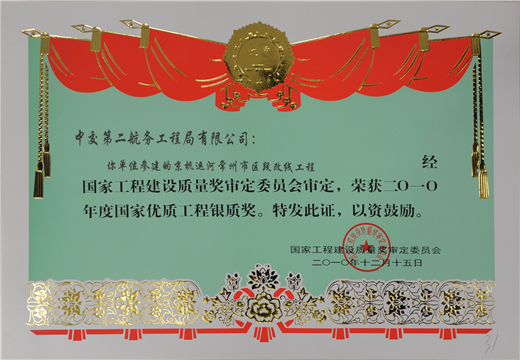 2010年京杭运河常州市区段改线工程获国家优质工程银质奖