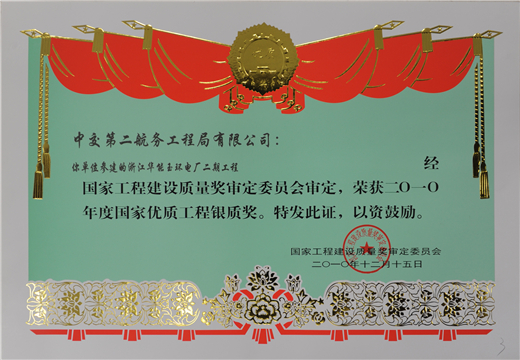 2010年华能玉环电厂二期工程获国家优质工程银质奖