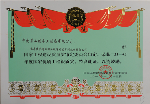 2010年株洲航电枢纽工程获国家优质工程银质奖
