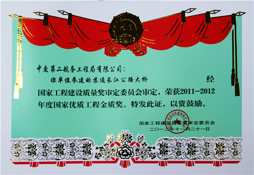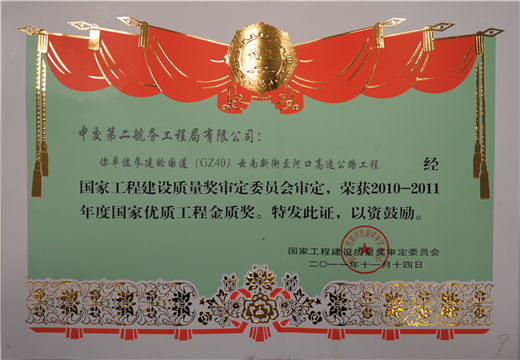 2011年云南新街至河口高速公路工程获国家优质工程金质奖