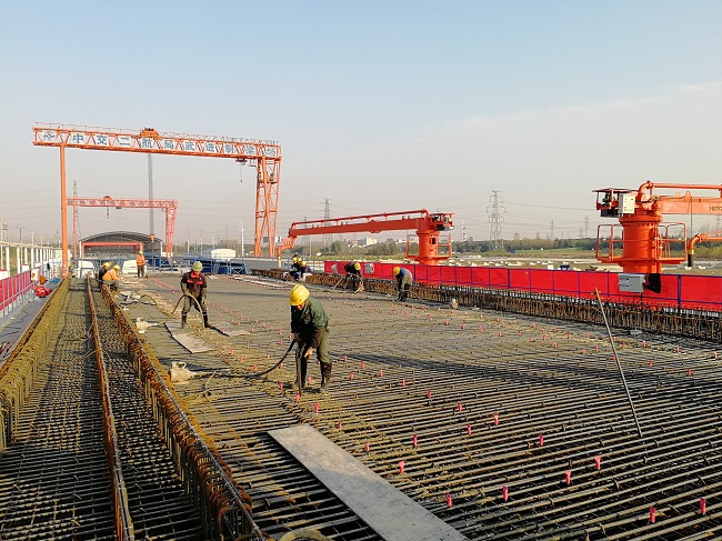 此次浇筑的40米长简支箱梁,具有节省材料、减少土地占用、方便架设安装、提升跨越能力等优点,可进一步提高跨河、跨路等复杂地段桥梁布置方案的灵活性和建设工效,大幅降低高铁修建的成本。