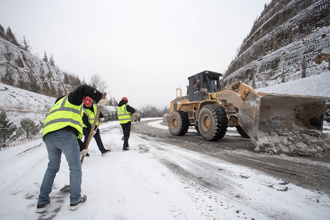 经过四个小时奋战,项目部协助救援6台车辆,清除了约3公里的道路积雪,并在其中几个急弯、陡坡铺洒了煤灰,增加路面摩擦系数,加速积雪融化,大大缓解了道路拥堵情况。