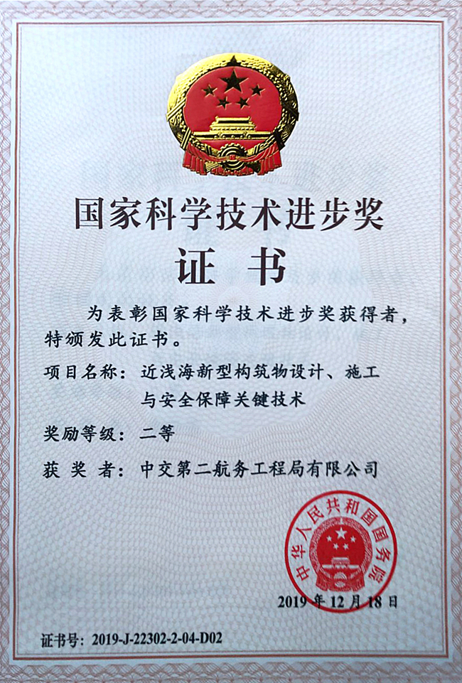 1月10日上午,2019年度国家科学技术奖励大会在北京隆重举行。中交二航局与中国海洋大学李华军院士团队合作申报的项目《近浅海新型构筑物设计、施工与安全保障关键技术》荣获国家科学技术进步奖二等奖。这是时隔7年后,中交二航局第6次获得国家科学技术进步奖。截至目前,中交二航局已累计获得国家科学技术进步奖一等奖2项、二等奖4项。