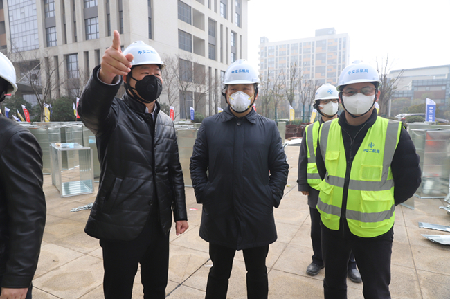 张文胜、施志勇一行察看了项目施工现场,详细了解施工进展情况,就项目施工方面的疑难问题给予了指导,并代表公司党委对全体建设者在极短时间内高效组织力量,克服重重困难,快速推动项目建设表示慰问和感谢。张文胜动容地说:“我感到由衷地钦佩和感动,你们是最美的二航逆行者!”