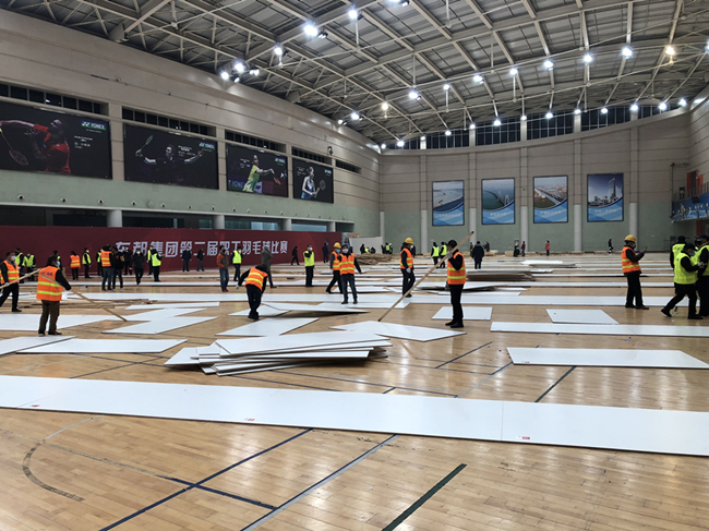 当日中午,根据中交二航局党委统一部署,五分公司迅速行动,从在汉员工中抽调41名管理人员,集合7支劳务队127名工人,调度保障车辆72台次,携带与调运水电用料及工具、生态板、木方等物资,从武汉三镇紧急集结,赶赴位于沌口经济技术开发区的武汉体育中心羽毛球馆,参与方舱医院建设。