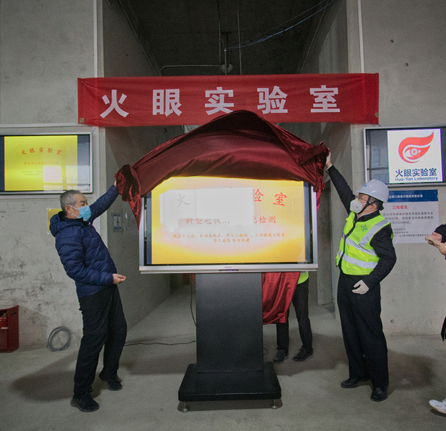 2月5日下午,由武汉华大基因公司建设,中交二航局负责施工的“火眼”实验室交付使用,实验室建成后,每天的病毒检测通量将大幅提升。华大基因董事长汪建,中交二航局党委副书记、总经理张鸿,党委常委、副总经理吴维忠,党委委员、副总经理、总工程师施志勇出席落成揭幕仪式,项目全体管理人员参加了仪式。在大家的欢呼声中,汪建与张鸿共同为“火眼”实验室揭牌。