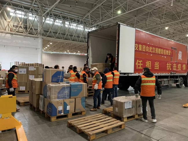 2月6日,历经7000多公里,从埃及开罗到中国武汉,总价值282万元的14000件防护衣和16000个护目镜如期送抵武汉国博仓库,交付到武汉市人民手中。大货车上“中交集团驰援武汉”几个大字格外醒目。
