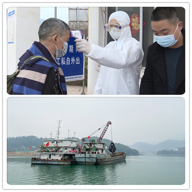 受疫情影响,为确保项目顺利复工,项目部提前筹备拟定复工计划,对返岗人员的个人信息、健康状况、活动轨迹、返岗路线、交通方式等进行了细致摸排。2月14日,第一批项目管理人员返岗,18日作业队伍负责人返岗,至今剩余管理人员和工人陆续分批返岗到位。人员返岗后,项目部及时与忠县交通局、当地街道村镇、项目公司对接,按照地方和上级主管部门要求编制复工方案、疫情防控方案、疫情防控应急预案,并报备审批获得通过。项目部根据方案并结合现场实际情况,按照港池开挖及土石方作业、陆域堆场管网施工、水上码头及起重机设备安装等三个阶段,分步骤、分工点逐步复工。