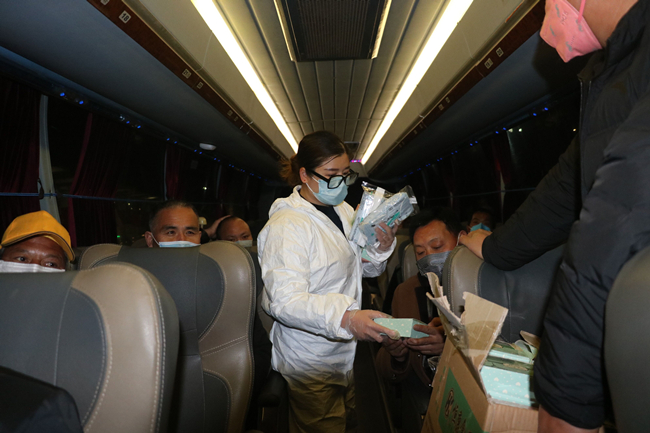 “春风行动”是四川省政府为做好疫情防控和农民工返程工作而启动的免费接送活动,可根据民工返岗时间安排运输班次,最大限度地减少民工出行负担。乘车前,工作人员会对乘车人员进行消毒、测温、登记,并严格落实交通部50%上座率要求,分散就坐,保持安全距离。(成都城建 王欣)