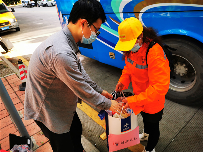 下午2点,42人平安落地并乘坐项目部租用的大巴车前往目的地,一下车,便收到装有一次性医用口罩、酒精、体温计等防护物资的“健康礼包”。同时,所有人抵达项目部后,将进行隔离观察。目前,项目部正在分批次为工人们进行核酸检测,确保工人们在身体健康的前提下,尽快投入到施工生产中。