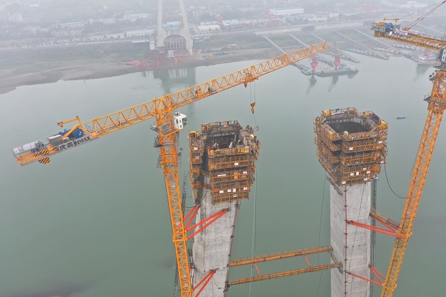3月3日,由中交二航局投资建设的重庆白居寺长江大桥进行了复工后首次主塔混凝土浇筑施工,标志着大桥全面复产。