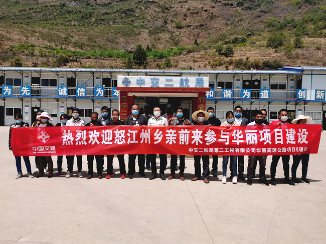 为认真落实党中央、国务院、国资委和中交集团关于全面打赢脱贫攻坚战和积极稳岗扩就业的决策部署,中交二航局积极主动与怒江州相关部门联系,为贫困农民工提供就业岗位,4月11日,中交二航局华丽高速公路项目迎来了第二批对口扶贫云南省怒江州的20名农民工。