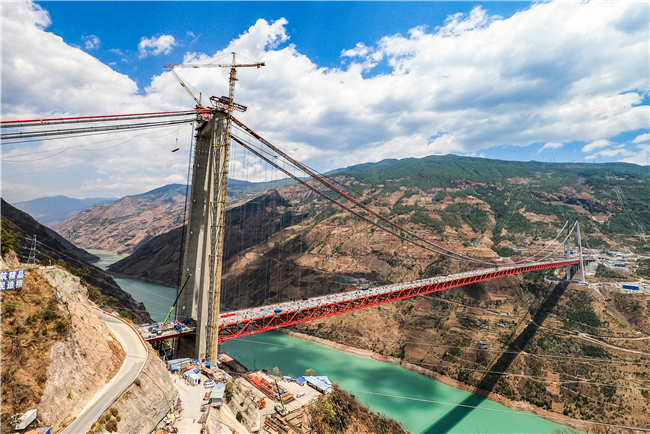“1500米级悬索桥重载缆索吊施工与控制关键技术”研发了集单侧集中控制系统、装配式跑车、开合式支索器等于一体的1500米级悬索桥缆索吊装备和快速安装技术,实现了缆索吊高效运行。——应用于华丽高速金安金沙江大桥