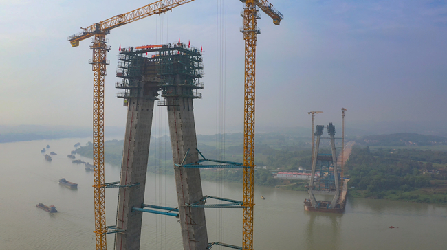 4月26日,由中交二航局承建的广西平南相思洲大桥北主塔顺利封顶。该桥创下广西桥梁建设三项之最:主跨450米,为广西最大跨度斜拉桥;索塔高147.3米,为广西最高桥塔;单片钢混组合梁最重500吨,为广西最重钢混组合梁。