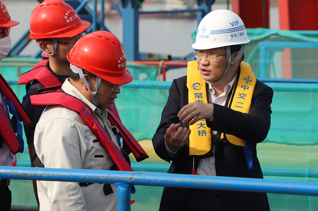 4月28日至29日,中交二航局党委副书记、总经理张鸿到江苏片区调研指导项目疫情防控和复工复产工作。