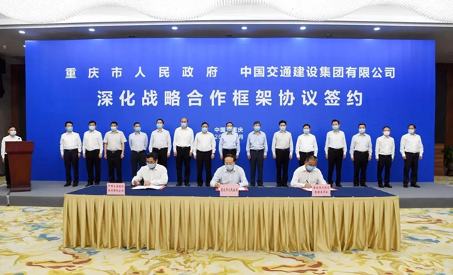 会见后,中交集团与重庆市政府签署深化战略合作框架协议。按照协议,中交集团将进一步扩大对重庆市基础设施建设及相关业务投资,并在渝成立投资平台公司,加强与区县政府及市级平台公司深度合作。活动现场,中交集团与两江新区政府签署了《中国交建重庆投资平台总部项目投资协议》。