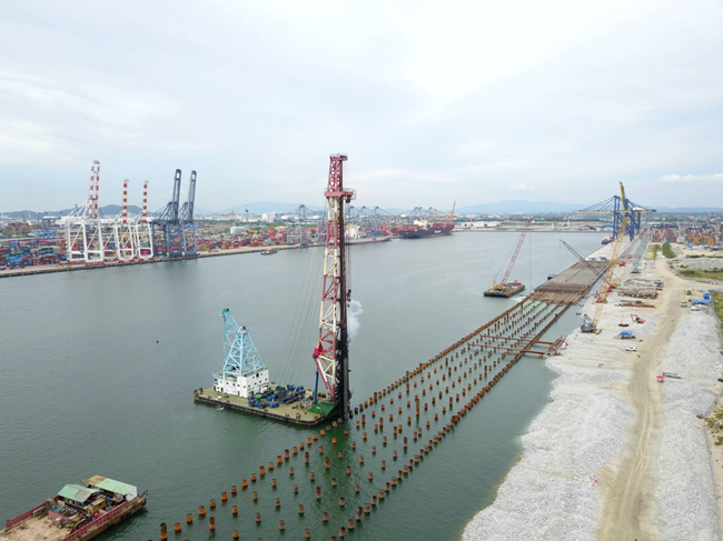 该项目位于泰国东部春武里省是拉差县,距离曼谷市约125公里,是泰国最大的深水集装箱港口。该码头平台长700米、宽36.45米,共有钢管桩840根,于2019年6月24日开始试桩。