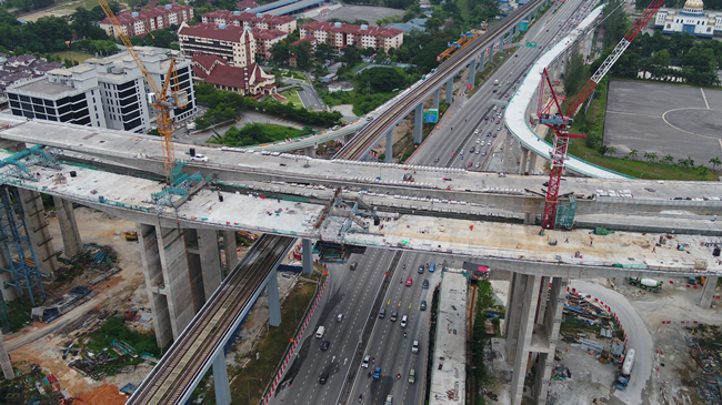 5月20日,中交二航局参与施工的马来西亚SUKE CA4项目再次迎来复工后重要节点。随着U5桥梁最后一车混凝土浇筑完成,第三座跨高速公路及MRT轻轨的连续刚构桥中跨合龙。至此,该项目三座连续刚构桥全面进入桥面施工阶段。