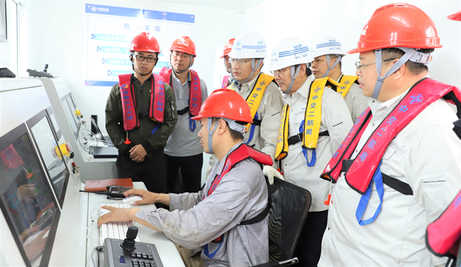 张鸿来到常泰长江大桥5号墩钢沉井施工现场进行督导检查,并沿着沉井下沉作业通道,对沉井每个隔舱取土下沉情况进行实地了解。张鸿还听取了项目部关于沉井取土下沉工作进展情况汇报,并对施工技术重难点问题和项目生产管理提出指导性意见和建议。