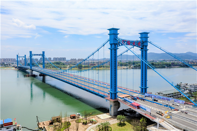 6月24日,由中交二航局投资建设的汉江首座、世界第四座三塔式悬索桥——襄阳凤雏大桥(原名庞公大桥)建成通车,襄城与樊城间再添一条过江新通道,大桥独特的外观造型也使其成为古城襄阳新地标。