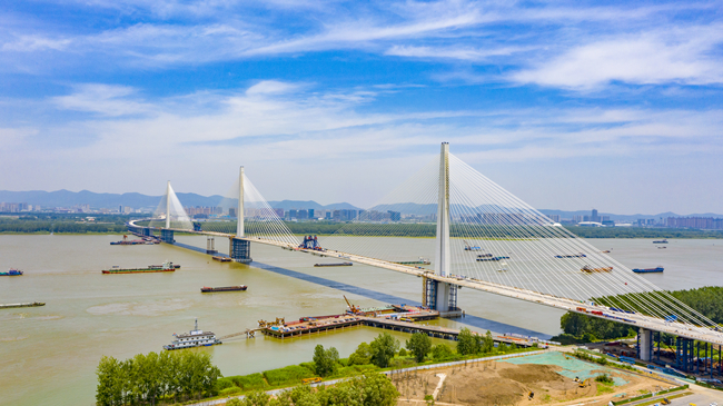 这座桥的建设深受国内外桥梁界关注。“从索塔到组合梁,这是世界第一座真正意义上钢混组合结构的大跨径桥梁。”南京市公共工程建设中心主任武焕陵介绍,南京长江二桥索塔为混凝土结构,南京长江三桥索塔为全钢结构,南京五桥集两者所长,既有钢塔的耐久性,同时又造价适中。这一“混搭”组合背后是一系列技术创新。项目建设团队与清华大学、西南交通大学等联手攻关,钢壳-混凝土组合索塔关键技术,这一成果已获2019年中国公路学会科学技术特等奖。