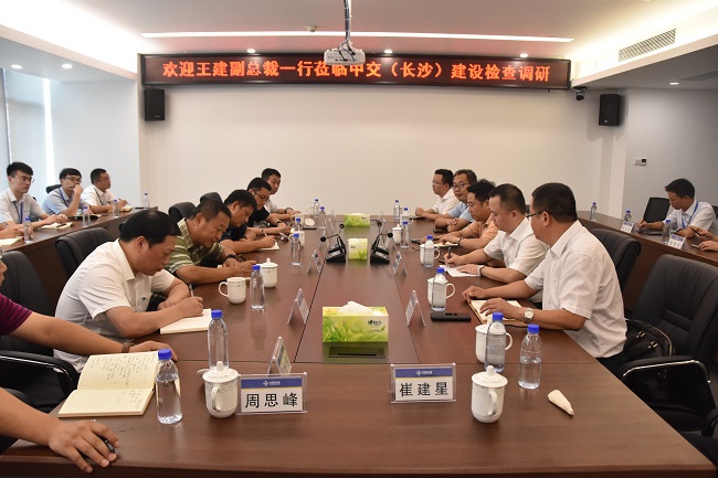 7月24日,中交集团党委常委、副总经理,中国交建党委常委、副总裁王建带队到中交(长沙)建设有限公司(简称“长沙建设公司”)调研指导工作,中交海西区域总部副总经理刘永贤、中交二航局副总经理黄涛等陪同调研。