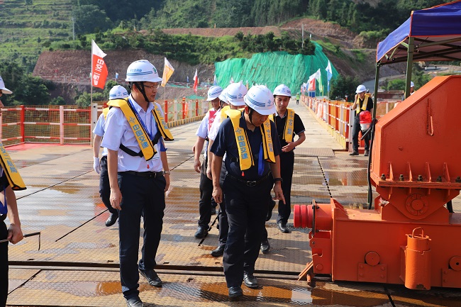 在官新高速公路项目,王建一行来到项目重点控制性工程——马路口资水特大桥6号主墩施工现场,重点检查了防洪防汛、安全文明施工、临时设施、设备管理等方面工作落实情况,并查阅了相关资料。