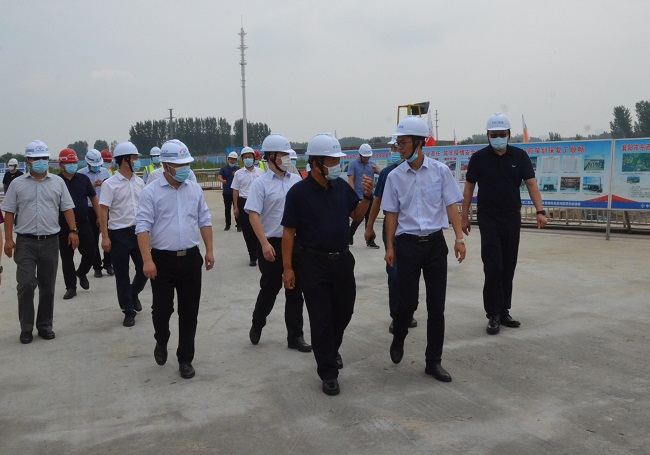 在襄阳东西轴线项目,王建一行重点检查了项目东汊、西汊干坞预制场防灾减灾及安全生产标准化等方面的工作,详细了解了“334”工程和安全生产“十二到位”在项目的落实落地情况,听取了项目重难点、施工进度等情况的汇报。