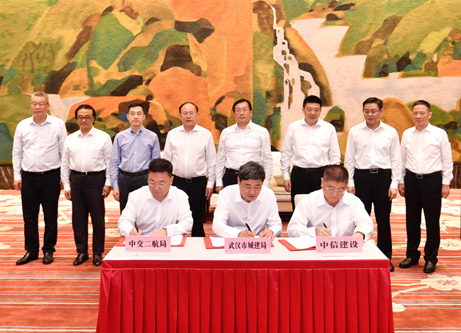 武汉市城乡建设局局长夏平和中信建设有限责任公司党委书记、董事长陈晓佳,中交二航局党委书记、董事长由瑞凯分别代表政府方和社会资本方签订协议。