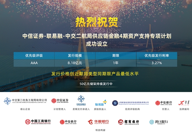 据了解,本期供应链ABS资产支持专项计划是在中国交建统筹指导下,中交二航局高效推进资产支持专项计划发行工作,充分发挥自身AAA信用评级优势,整合多方资源,与主承销商、投资者等充分沟通,实现本期专项计划的成功发行。这是中交二航局践行产融结合、创新金融模式的重要举措,是推进公司产研、产信、产融融合,服务供给的有力印证,增加了与供应商的粘度,共赢互利,增强了公司的核心竞争力。同时,也优化了资产负债结构,提高了公司资金周转效率,增强了公司产业竞争优势,有力支撑公司战略转型升级,将进一步助力公司率先建成世界一流企业。(财务资金部)
