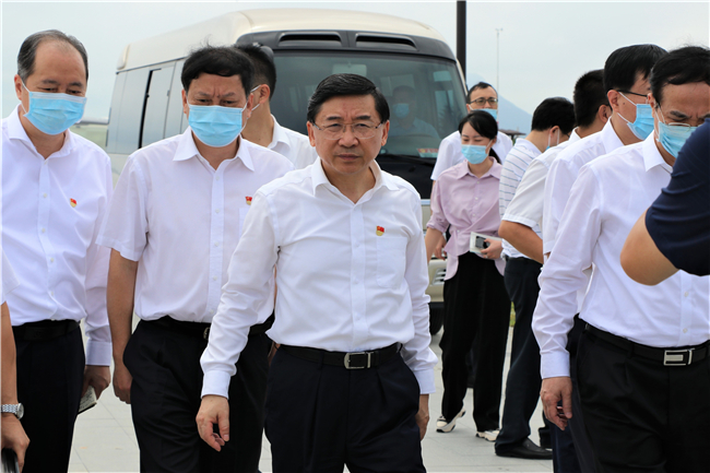 9月10日,福建省委书记于伟国到中交二航局228国道长乐项目检查调研,福州市委副书记、市长尤猛军,福州市委副书记林飞等参加调研。