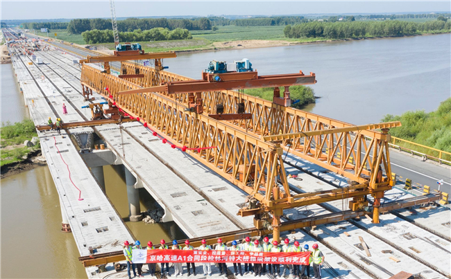 而这,仅仅是该项目的一个小创新。截至目前,中交二航局京哈项目部已累计推广应用“新技术”共6大项、14小项,累计完成微创新8次、技术论文3篇、创新专利2项。其中,玻纤套筒旧桥缺陷加固技术通过创新,有效解决了旧桥遗留的混凝土问题,提高了其承载力和耐久性;大体积混凝土降温法利用预留的测温装置,实现了对内外部温度的控制;现浇湿接缝模板提吊系统既有效释放了人工,又提高了施工品质;温湿度智能测控设备通过远程传输实现了对冬季施工混凝土的实时监控;新型水溶性清水混凝土修饰保护技术有效提高了桥梁结构的耐久性及外观质量……
