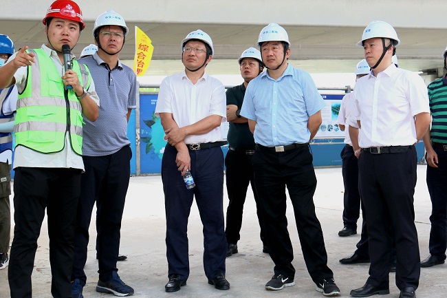 蒋振雄一行来到盐港东立交项目装配式桥梁施工现场,详细了解预制装配式桥梁施工情况。在随后召开的座谈会上,他听取了中交二航局梁桥一体化施工技术研究与应用和深圳沿江高速公路盾构段情况的介绍,与会人员围绕梁桥一体化施工和盾构施工技术难点、技术创新等进行了深入交流。