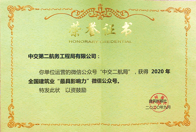 会上,公布了2020年全国建筑业“最具影响力”微信公众号和2020年全国建筑业优秀微信公众号榜单并颁发获奖证书。中交二航局微信公众号获评2020年全国建筑业“最具影响力”微信公众号,三公司、五分公司和广州建设公司微信公众号获评2020年全国建筑业优秀微信公众号。