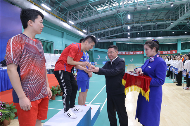 公司党委副书记、工会主席、赛事组委会主任张文胜为获得女子单打冠、亚、季军的选手和优秀组织奖获奖单位颁奖并致闭幕词。他指出,本届羽毛球赛达到了凝聚人心、鼓舞士气、陶冶情操、锻炼身体、相互交流的目的。他希望各单位、全体运动员以本次比赛为契机,以更加饱满的热情,更加强健的体魄,更加务实的作风,不断解放思想、开拓创新、扎实工作,为公司打造高品质建筑业一体化服务商和建设具有全球竞争力的世界一流企业而不懈奋斗!