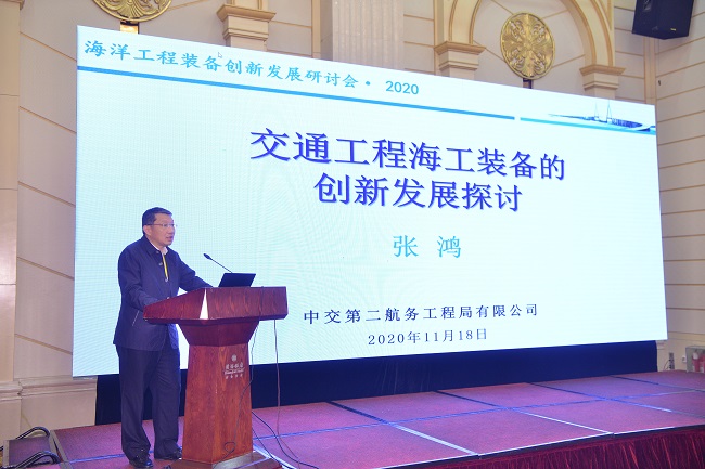 在报告中,张鸿介绍了海工装备在交通基础设施建设中的应用现状和创新发展方向,回顾了中国在深水航道、近海港口、跨海桥隧、远洋岛礁建设方面的成就,介绍了中交二航局近年来建设的世界顶尖项目。他介绍了长江深水航道整治、港珠澳大桥等代表性工程中海工装备的创新应用情况,梳理了行业内海工装备发展的技术脉络,分析了交通基础设施建设从内河近海到远洋外海发展过程中面临的各种挑战,并结合规划中的国内外跨海通道,提出了复杂建设条件下开展海工装备技术攻关的9个难题,为与会专家研究探讨提供了参考。