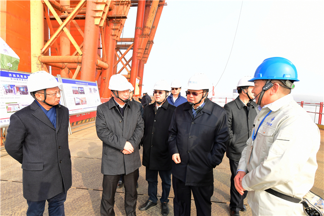 12月10日,中交集团党委书记、董事长、总经理王彤宙到二航局济南凤凰路黄河大桥项目调研。