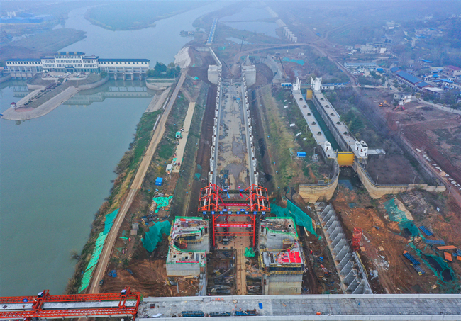12月12日,中交二航局承建的引江济淮工程东淝河船闸主体工程完工。