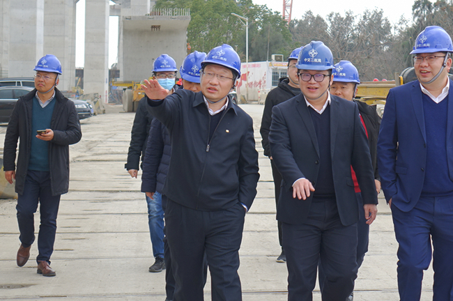 1月25日,中交二航局党委副书记、总经理张鸿到温州瓯江北口大桥项目检查调研。