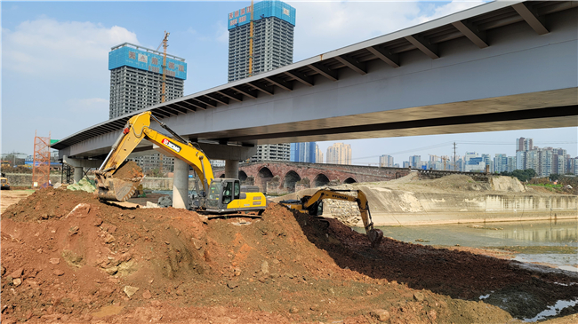2月20日,由中交二航局承建的成都启元一街项目节后正式复工。在启元一街二江寺新桥施工现场,施工人员正在进行南侧一期围堰拆除工作,为后续二期围堰填筑和桥体结构施工做好准备。