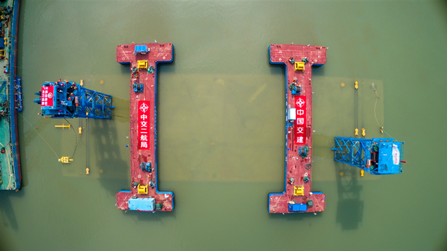 3月9日22时58分,湖北襄阳汉江水下25米深处,由中交二航局投资建设的千里汉江首条沉管隧道E5管节成功沉放安装,与2月9日完成沉放的E6管节完美“牵手”,全程历时5小时。