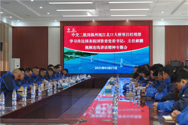 国务院国资委党委书记、主任郝鹏于3月27日到中交二航局调研,并通过生产指挥中心连线温州瓯江北口大桥项目,详细了解大桥建设、安全生产、科技创新等情况。