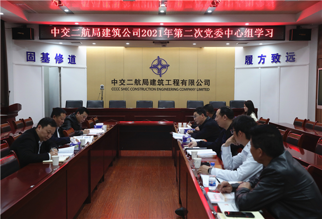 4月9日,建筑公司党委理论学习中心组召开2021年第二次集体学习会议,重点学习了国务院国资委党委书记、主任郝鹏调研二航局讲话精神。与会同志一致认为,必须认真贯彻落实郝鹏书记讲话精神,引导和激励全体干部员工,不断提升服务能力,提高工作执行力,奋力推动建筑公司高质量发展,为中交集团建设具有全球竞争力的“科技型、管理型、质量型”世界一流企业贡献力量。