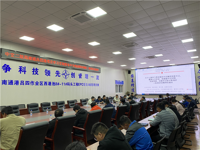 4月13日,中交二航局南通吕四港项目部召开专题会议学习宣贯中交集团领导调研二航局讲话精神。会议强调,项目部全体人员要认真学习讲话精神,把讲话精神同完成年度各项任务结合起来,形成推动工作、狠抓落实的强大合力,咬定目标、持续发力,确保通州湾新出海口起步港区年底如期开港运营,为中交集团建设具有全球竞争力的“科技型、管理型、质量型”世界一流企业贡献力量。(黄欣然)