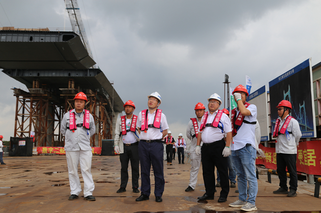 东莞港湾大桥是目前国内最大跨径“先缆后梁”自锚式悬索桥。张鸿深入大桥施工现场,全方位了解项目创新工艺实施、安全生产管理等情况,对港湾大桥“先缆后梁”倒提升工艺等创新成果及项目施工进展情况给予充分肯定,对项目一线建设者进行慰问,对项目面临的技术难题提出解决方案和指导意见。