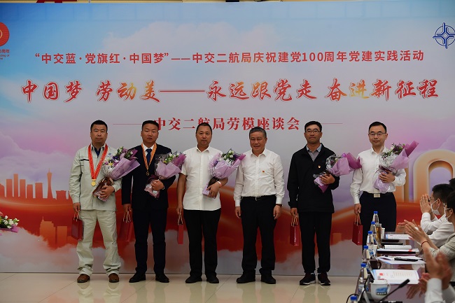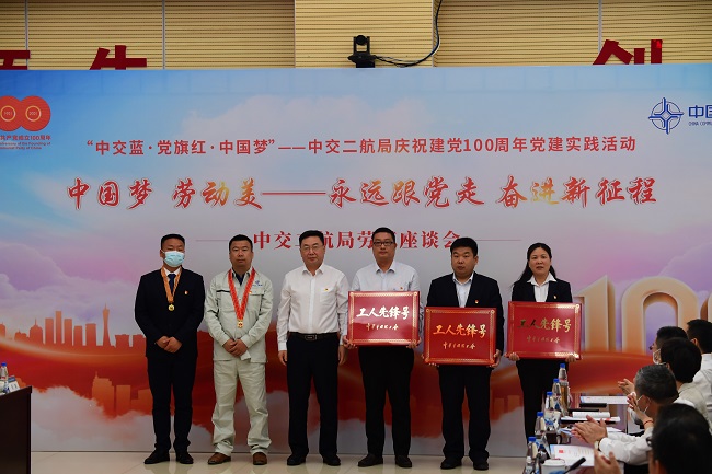 为大力弘扬劳模精神、劳动精神、工匠精神,营造劳动最光荣、劳动最崇高、劳动最伟大、劳动最美丽的浓厚氛围,认真开展好“中交蓝?党旗红?中国梦”——中交二航局庆祝建党100周年党建实践活动,凝聚推动公司高质量发展的合力,以实际行动向建党100周年献礼,5月18日,中交二航局举办“中国梦?劳动美——永远跟党走、奋进新征程”劳模座谈会。武汉市总工会党组成员、副主席李兵,公司党委书记、董事长由瑞凯等出席会议,并与公司劳模代表座谈交流。