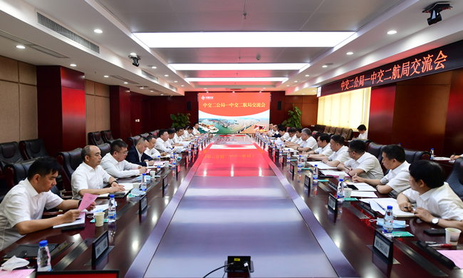 5月25日,中交二航局党委书记、董事长由瑞凯在公司总部与来访的中交二公局党委书记、董事长赵桢远一行会谈。